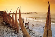 Huanchaco con sus tradicionales caballitos de totora, es uno de los más bellos balnearios del Perú.